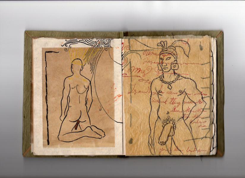 The little green book is one of the first sketchbooks I created after a particularly dry creative period. Up until 2018, I had not made keeping a sketchbook a central component of my practice. To this day, I have a habit of sketching ideas out on random sheets of paper. The vast majority of these sketches end up being thrown away and recycled. It was this book that allowed me to begin a process where I could curate and keep certain ideas that I felt were still raw. I was able to experiment with collage, paint, and ink in a way that was more loose than my traditional pen and ink drawings.